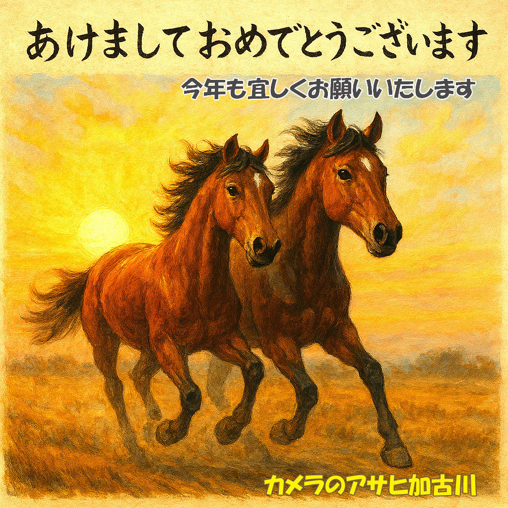 あけましておめでとうございます。1月4日からの営業になりますので、宜しくお願いいたします。すべてが、🐎くいく年になりますように。